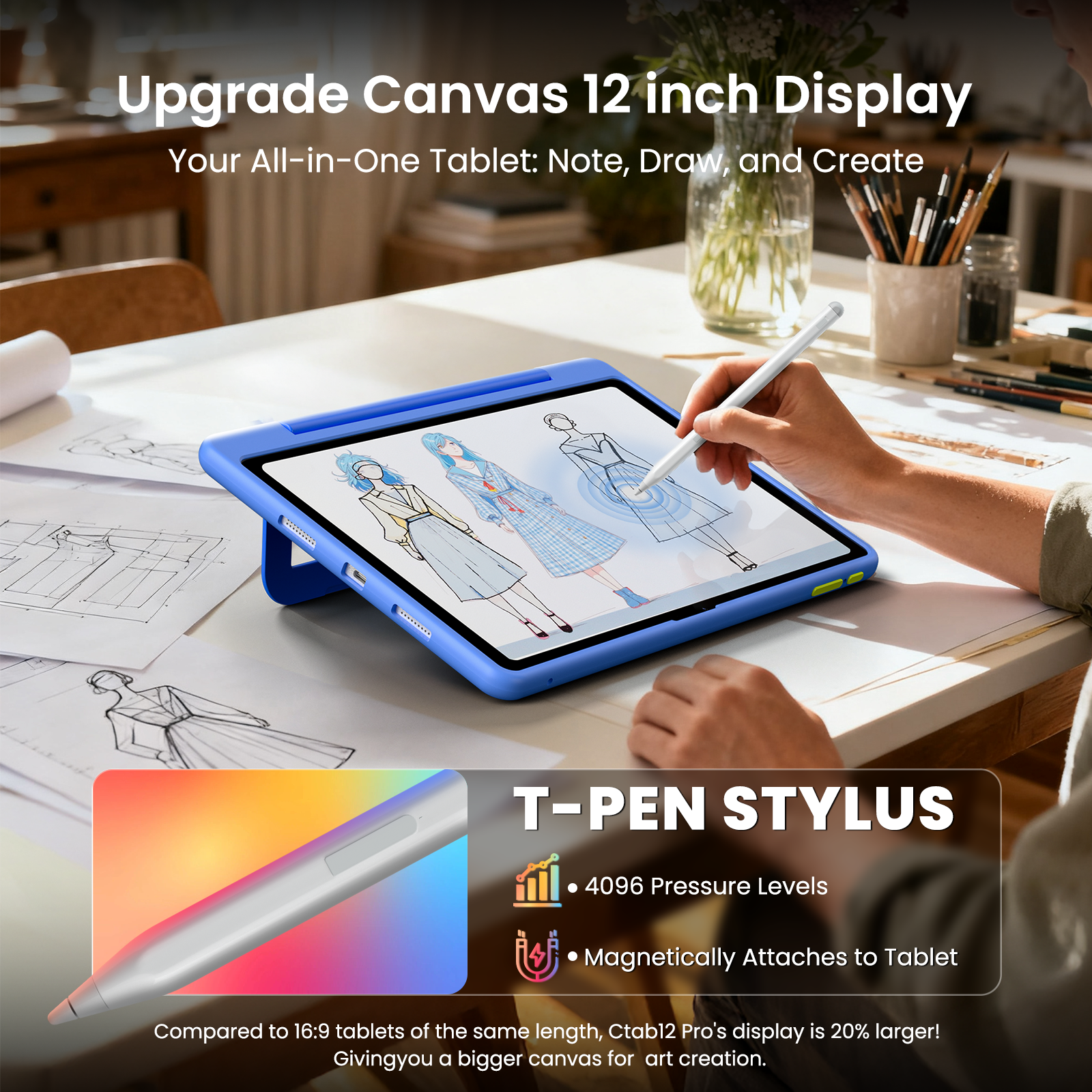 • Experience Every Detail in Stunning Clarity – The 12-inch IPS display delivers crisp, vibrant 2K visuals, bringing every brushstroke, movie, or game to life. Wide viewing angles and anti-glare technology ensure accurate colors and comfortable, precise artwork from any position.