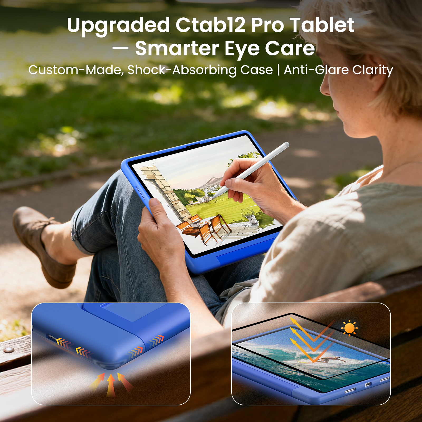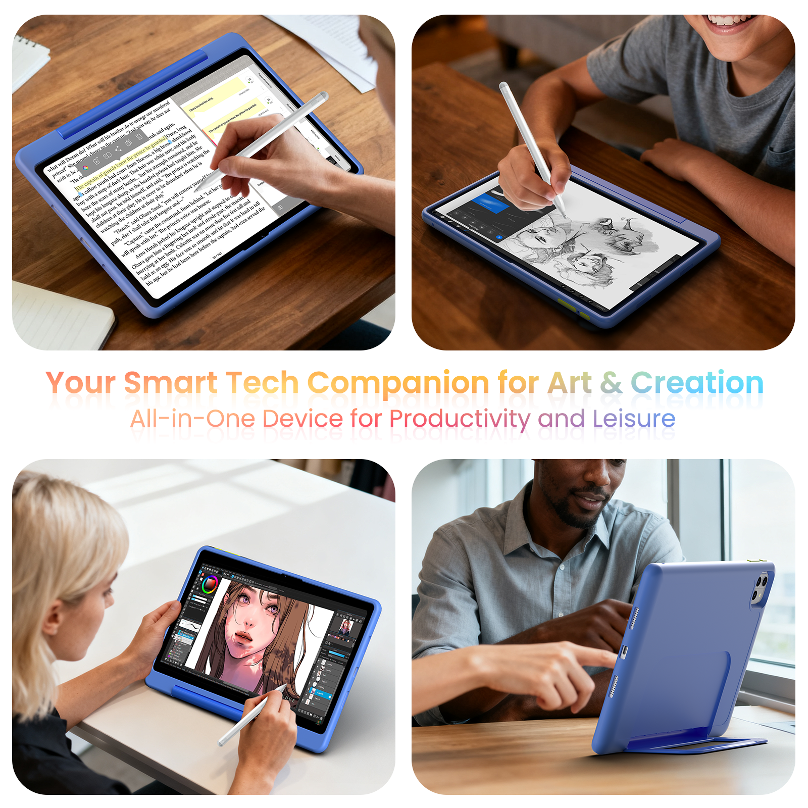 • Large Screen with Protective Case – Enjoy a spacious canvas for drawing, sketching, or working. The included protective case features three folding modes, providing multiple viewing angles while protecting your tablet from scratches and bumps—ideal for creating, typing, or watching videos anywhere.