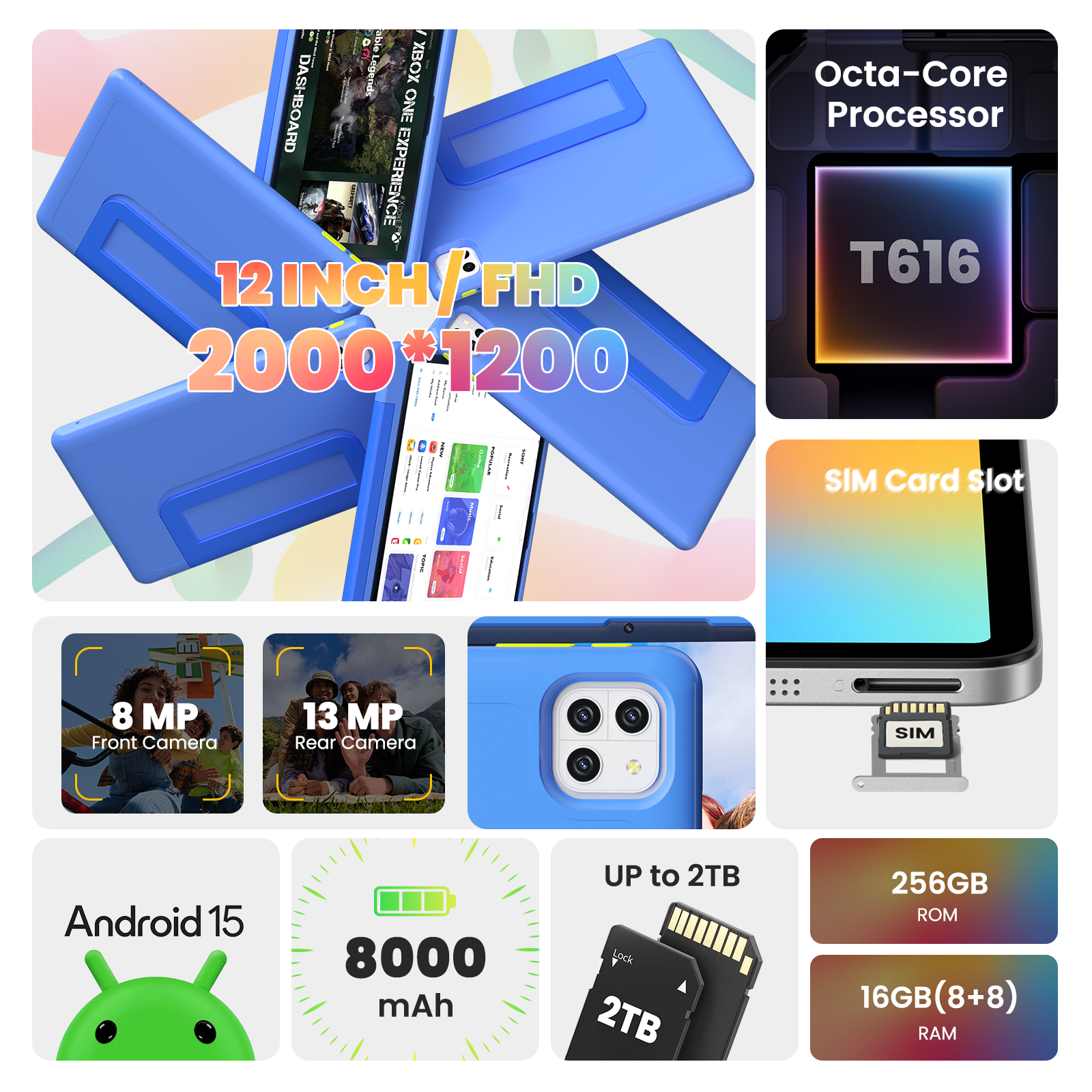 • Multifunctional Drawing Tablet – The Catb 12 is a 12-inch Android 15 tablet, powered by a T616 octa-core processor with 16GB RAM and 256GB ROM (expandable up to 2TB) for smooth multitasking. Ideal for online teaching, Zoom meetings, and digital art creation, it’s perfect for beginners and professionals in drawing, sketching, design, 3D work, and animation.