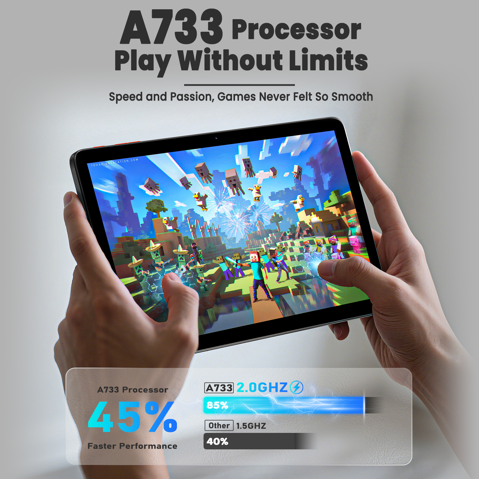 • Powerhouse Performance - Powered by the Allwinner A733 processor and 16GB RAM, this Android tablet delivers desktop-level speed for buttery-smooth gameplay in Roblox, Minecraft, and Among Us. No ads, no delays—just pure fun! With 128GB storage (up to 2TB), you’ll never run out of space for your favorite memories. Pre-installed Google Play Store gives you access to all your favorite apps like Netflix, YouTube, Facebook, and more
