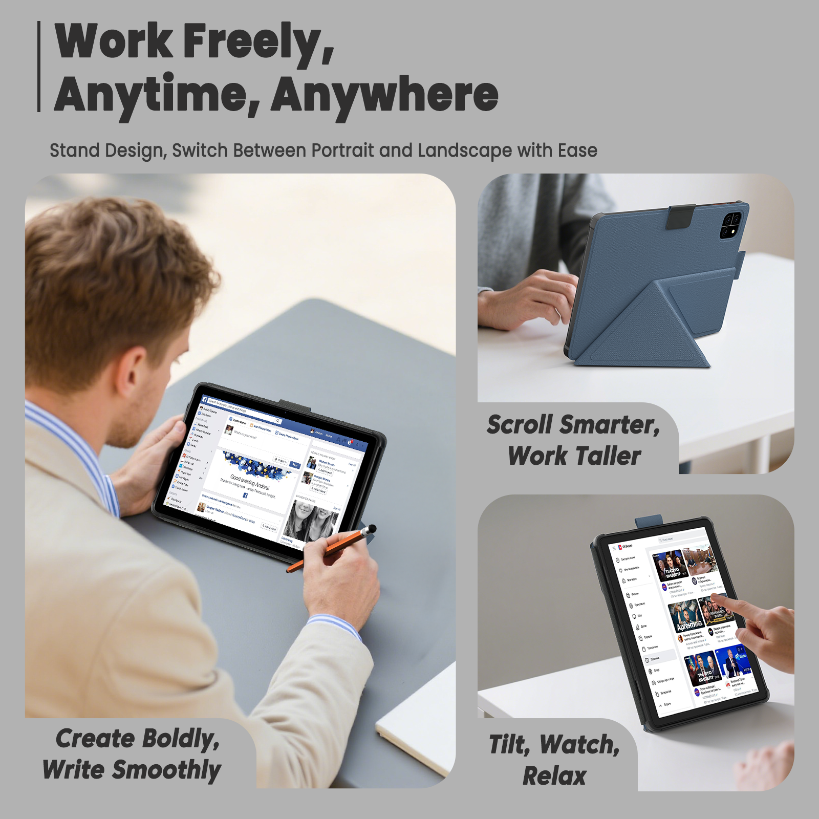 • Ultra-Lightweight Design with Stylus & Case Included – Weighing just 15 oz with a slim 0.33-inch profile, this 10-inch tablet is as light as paper—perfect for all-day use. The included protective case provides added drop and scratch resistance, plus three different folding ways for hands-free viewing. Paired with a responsive stylus for effortless control without hand fatigue, it’s a versatile device for work, study, or creative use on the go