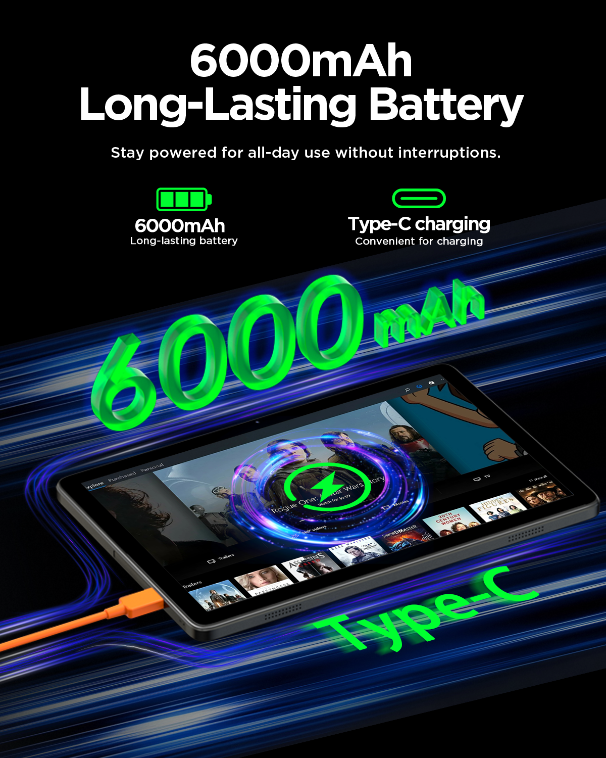 Enjoy faster speeds and stable connections with next-gen Wi-Fi 6 and Bluetooth 5.4. Whether you’re working remotely or gaming online, this cheap tablet keeps you reliably connected across all your devices.